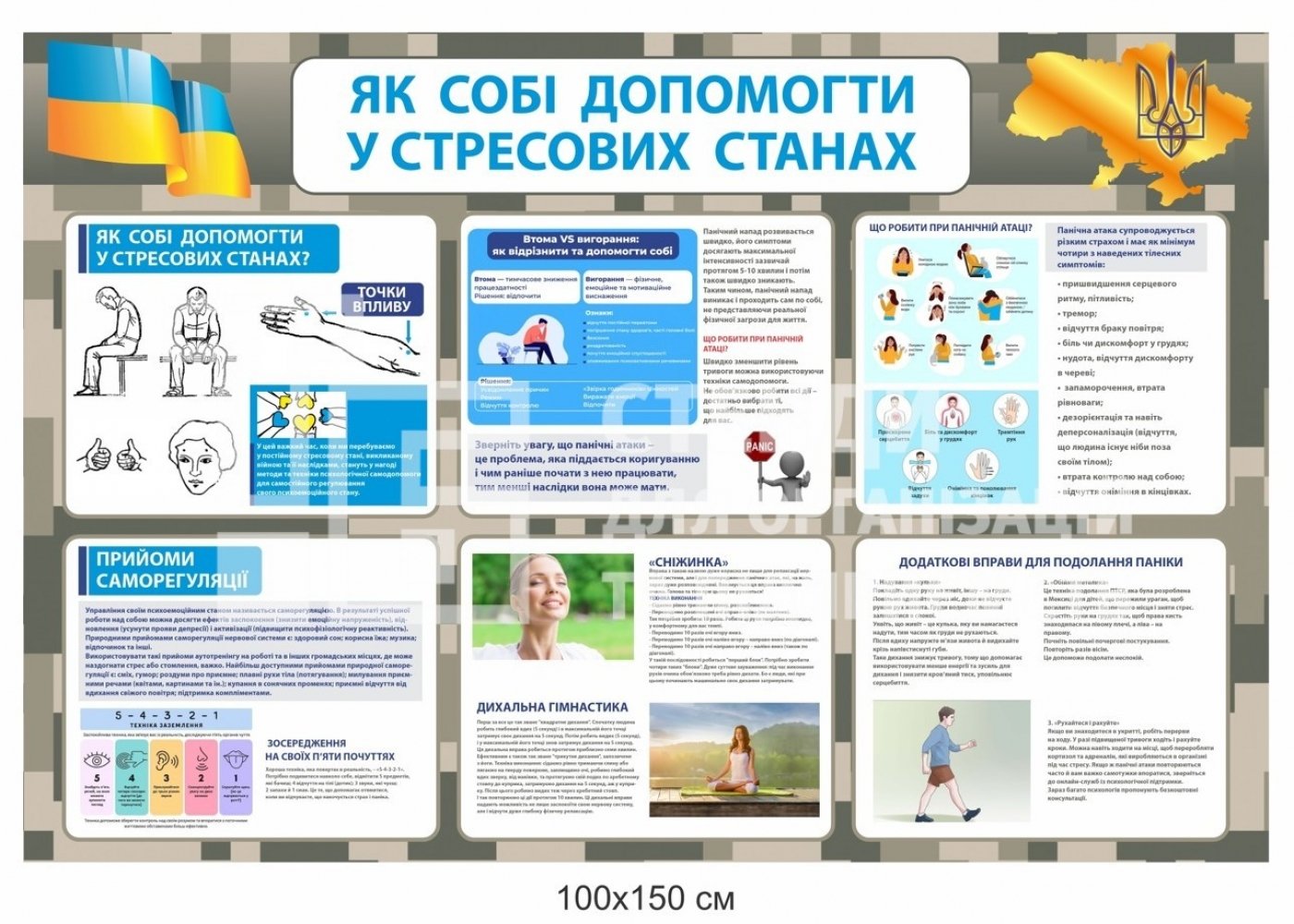 Банер "Як собі допомогти у стресових станах" - купити на stend-tb.com.