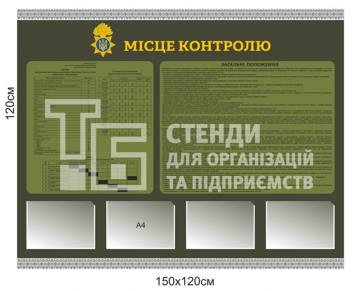 Місце контролю є одним із ключових елементів організації роботи у військових частинах, навчальних закладах із військовою підготовкою та установах, де першочергову роль відіграють дисципліна й порядок. Це спеціально оформлений інформаційний стенд, на якому розміщується найважливіша інформація для особового складу: від нормативних документів та інструкцій до графіків перевірок і списку відповідальних осіб. Його призначення полягає не лише в інформуванні, а й у підтриманні високого рівня дисципліни, прозорості та відповідальності.