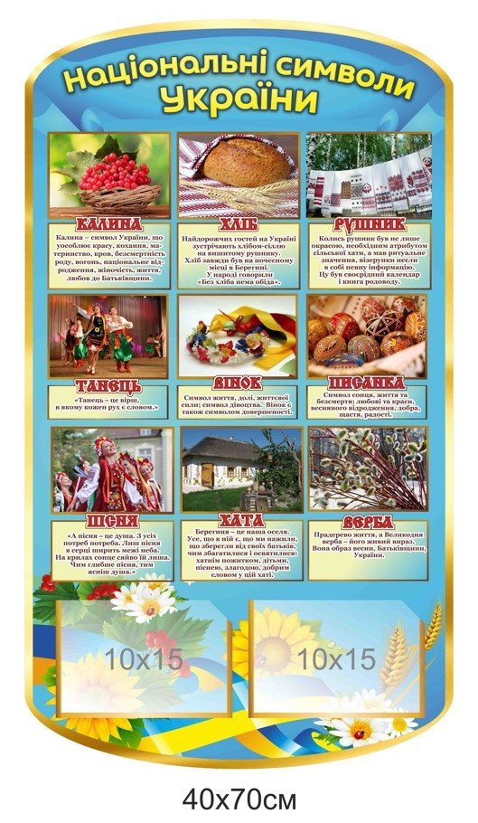 Кожен елемент супроводжується коротким поясненням, завдяки чому діти легко запам’ятовують значення традиційних українських символів. Такий підхід робить стенд не лише декоративним, а й навчально-пізнавальним.