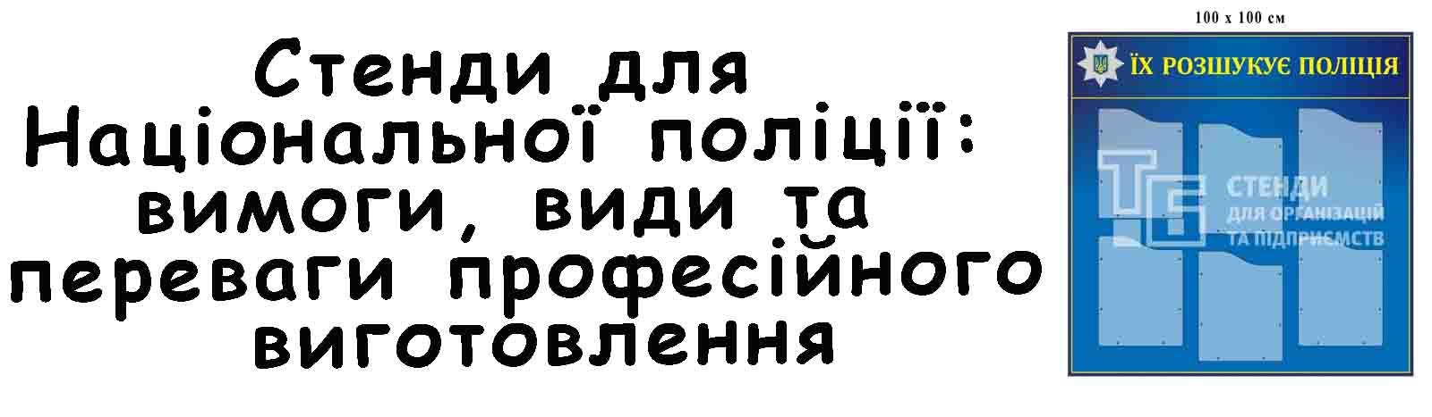 Компанія Stend-TB пропонує виготовлення інформаційних стендів для Національної поліції України з урахуванням усіх вимог та побажань замовника.