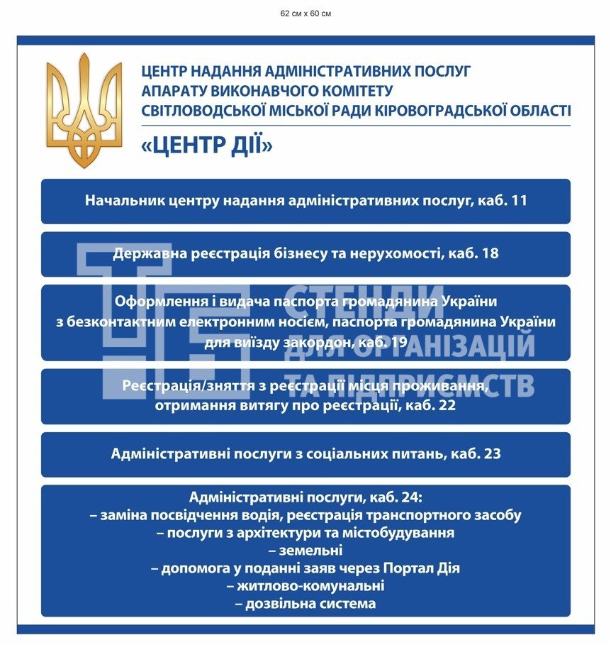 Інформаційний стенд для ЦНАПу "Центр дії" - купити на stend-tb.com