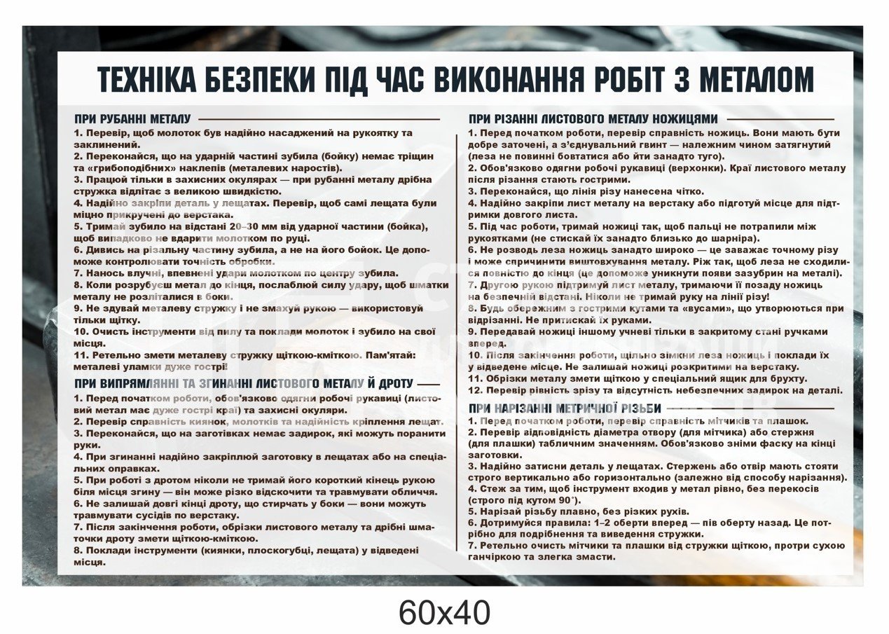 Комплексний стенд "Обробка металу" для шкільної майстерні - купити на stend-tb.com