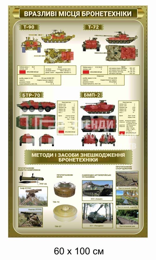 Плакат "Вразливі місця бронетехніки. Методи і засоби знищення бронетехніки" - купити на stend-tb.com