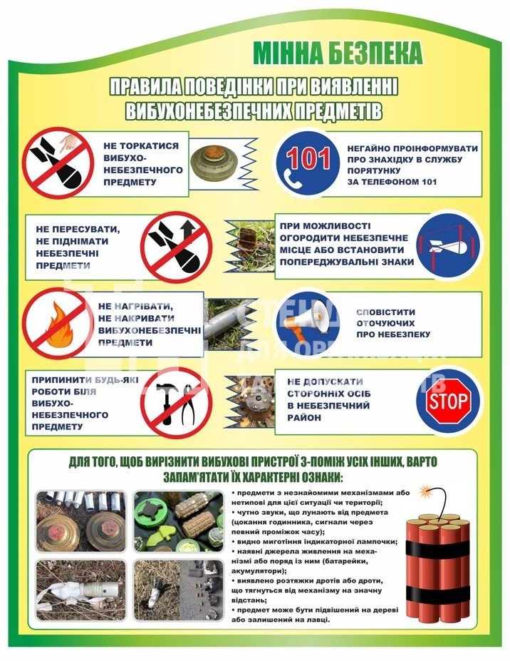 Пластиковий плакат "Мінна безпека" - купити на stend-tb.com.