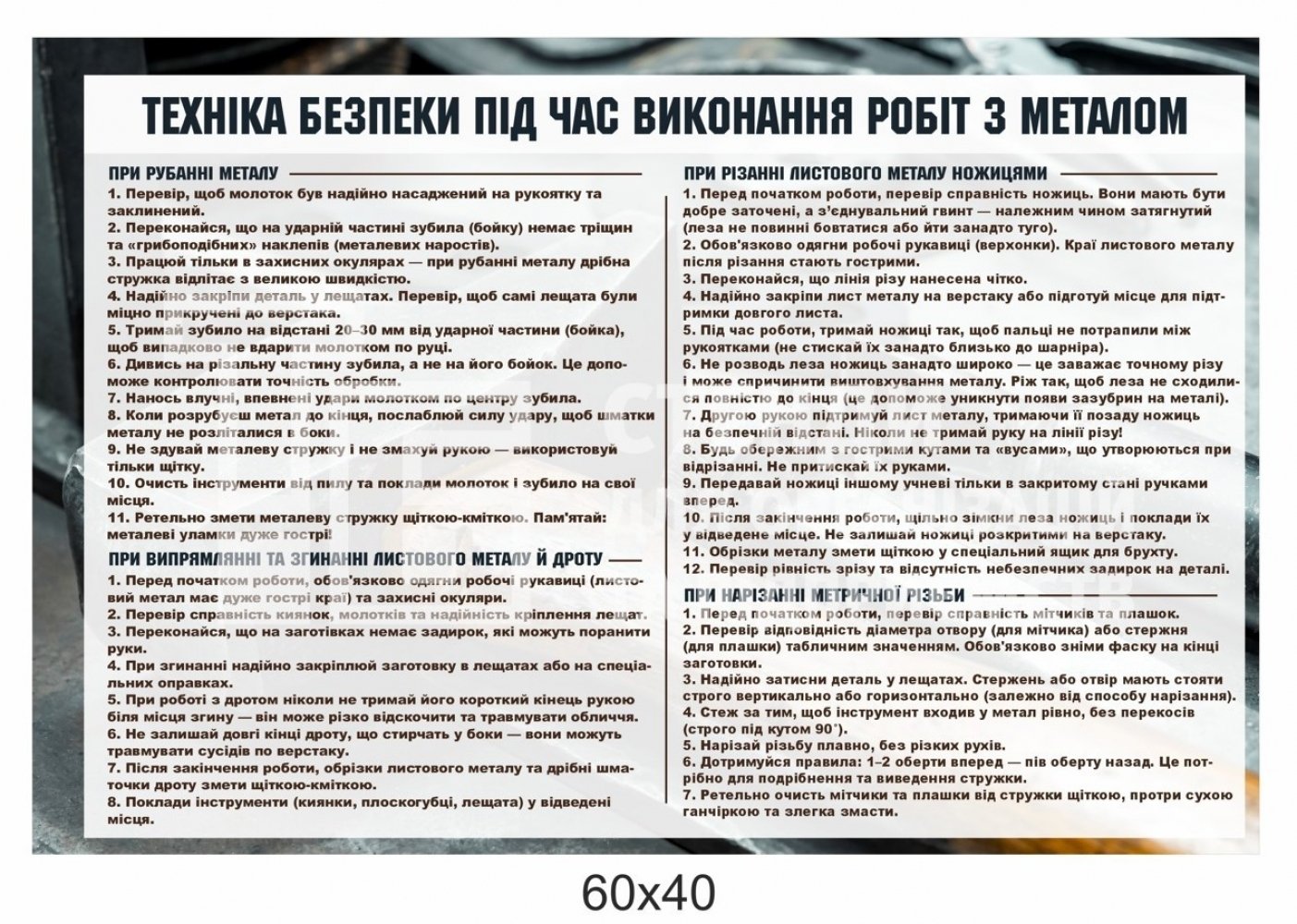 Стенд "Техніка безпеки під час виконання робіт з металом" - купити на stend-tb.com