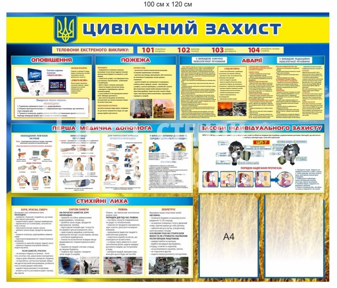 Стенд "Цивільний захист" в патріотичному стилі - купити на stend-tb.com