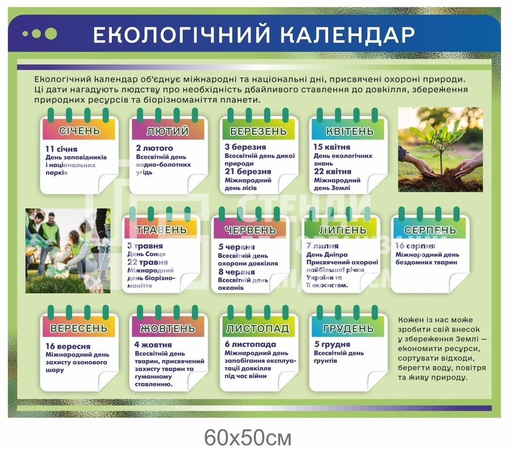 Стенди для школи виготовляються з якісного ПВХ, мають яскравий друк та довговічне покриття, що не вигоряє з часом. Вони ідеально підходять для оформлення кабінетів біології у школах, ліцеях та інших навчальних закладах.