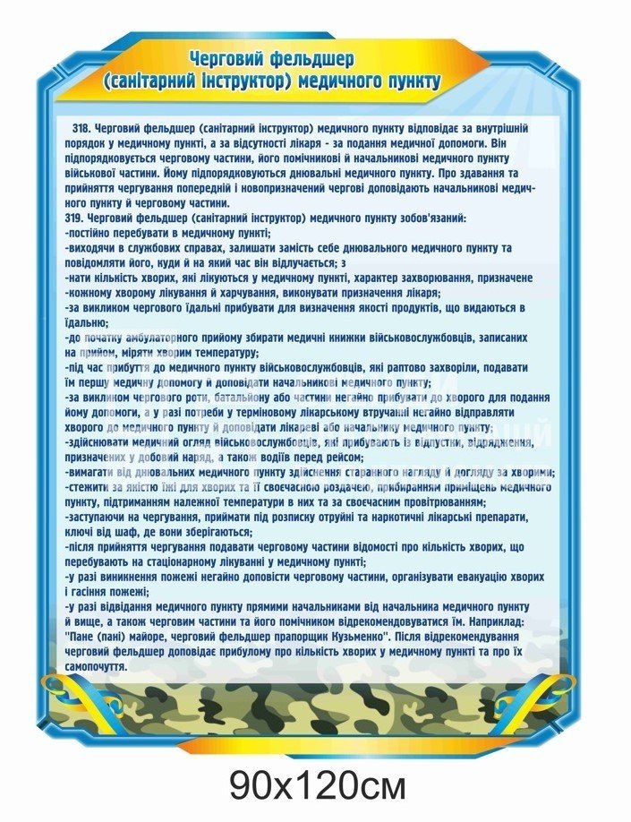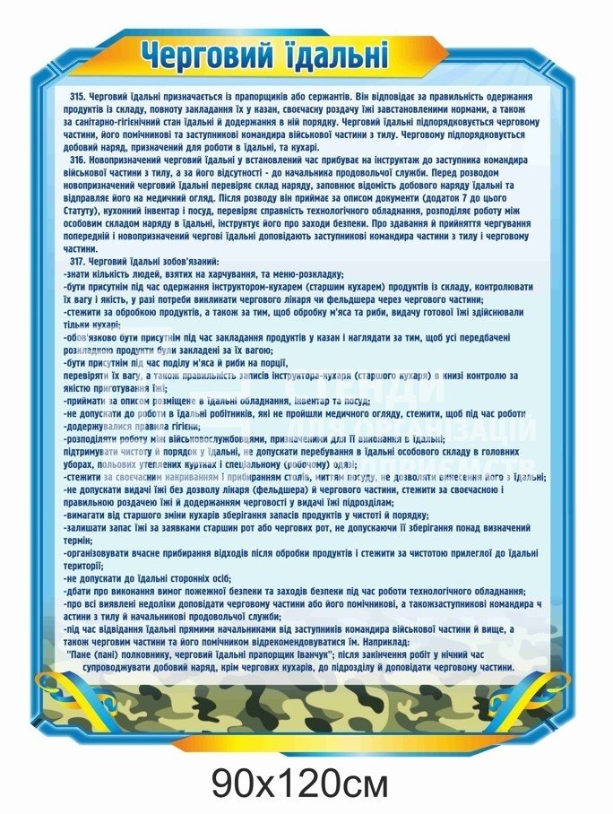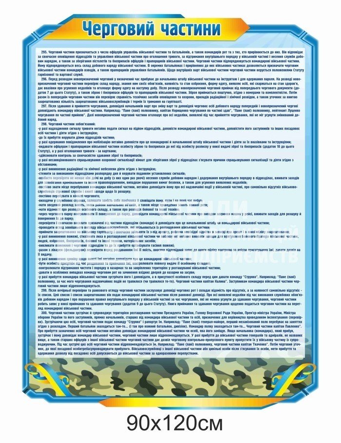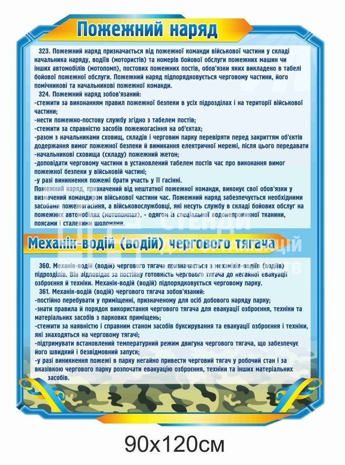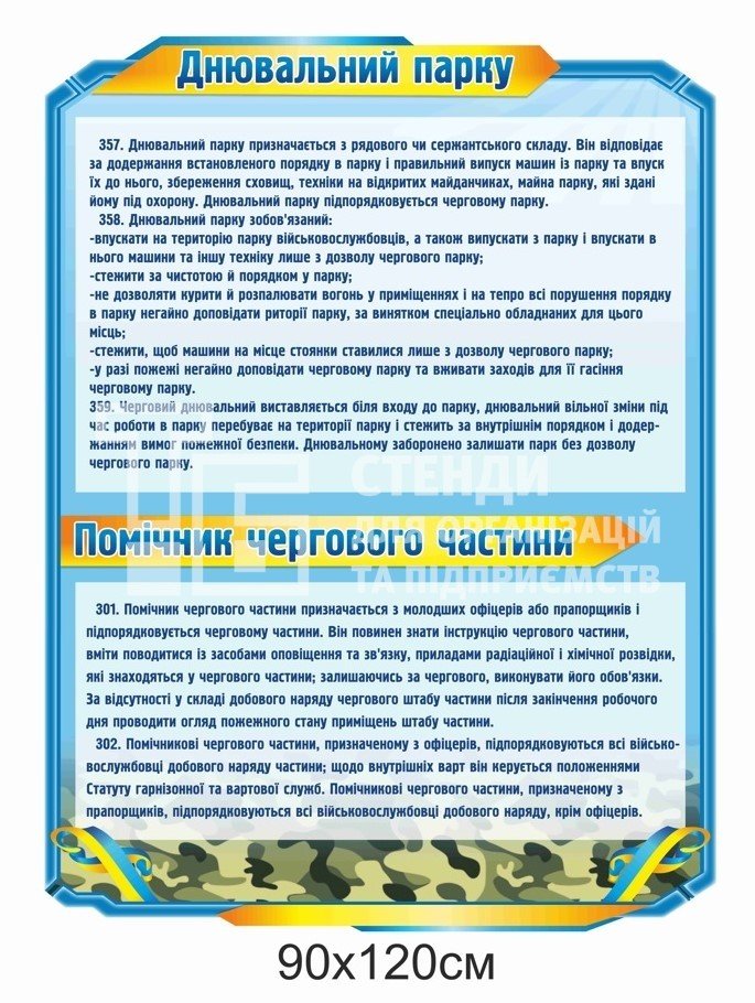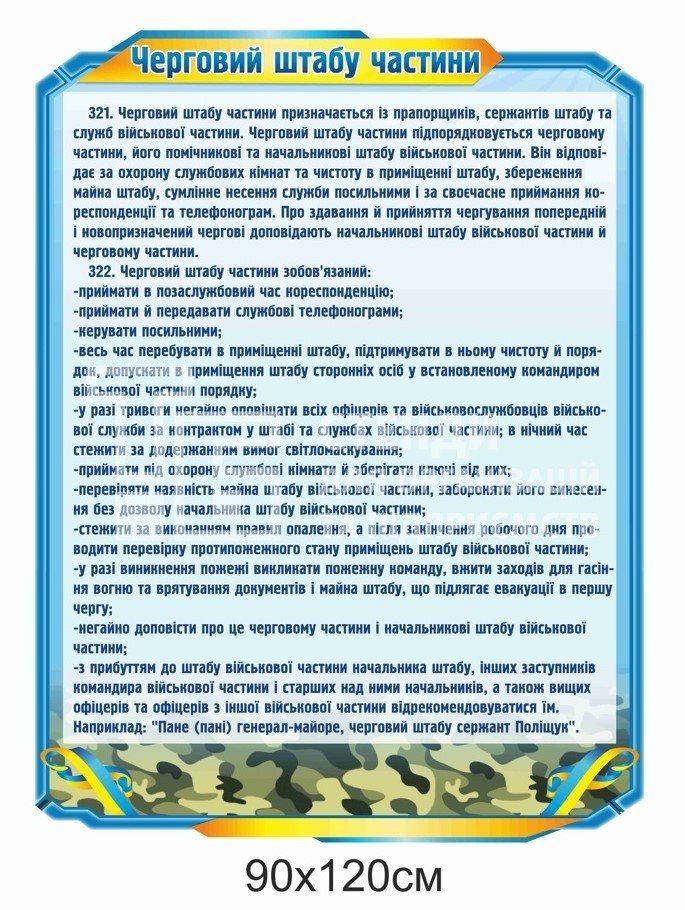 Стенди для ЗСУ: обов’язки чергового (парк, їдальня, КПП, штаб) - купити на stend-tb.com