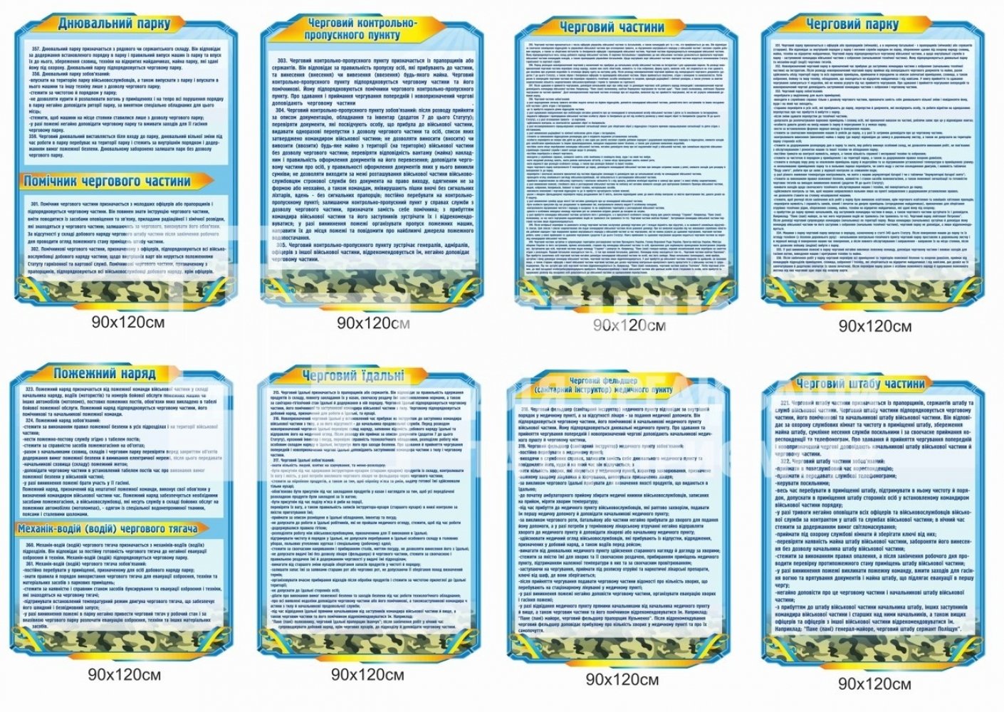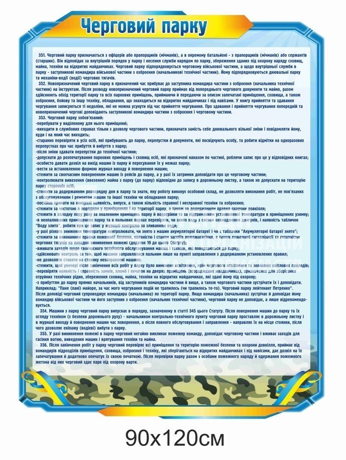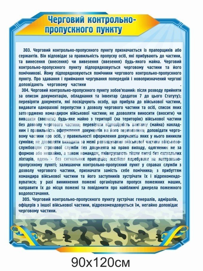Стенди для ЗСУ: обов’язки чергового (парк, їдальня, КПП, штаб)