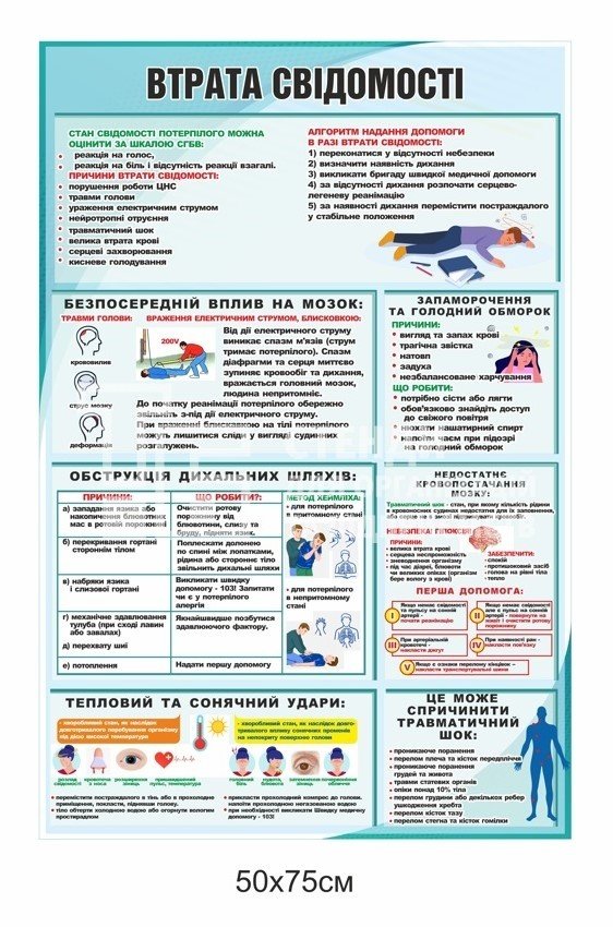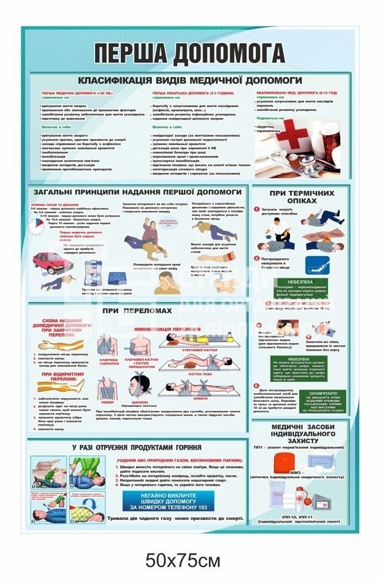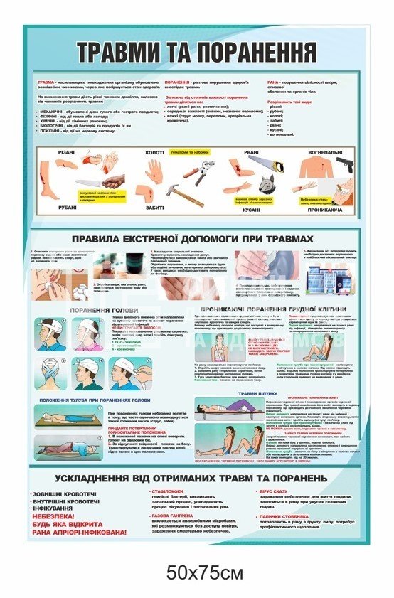 Стенди "Перша допомога. Термінальний стан людини. Травми та пораненя. Втрата свідомості" - купити на stend-tb.com