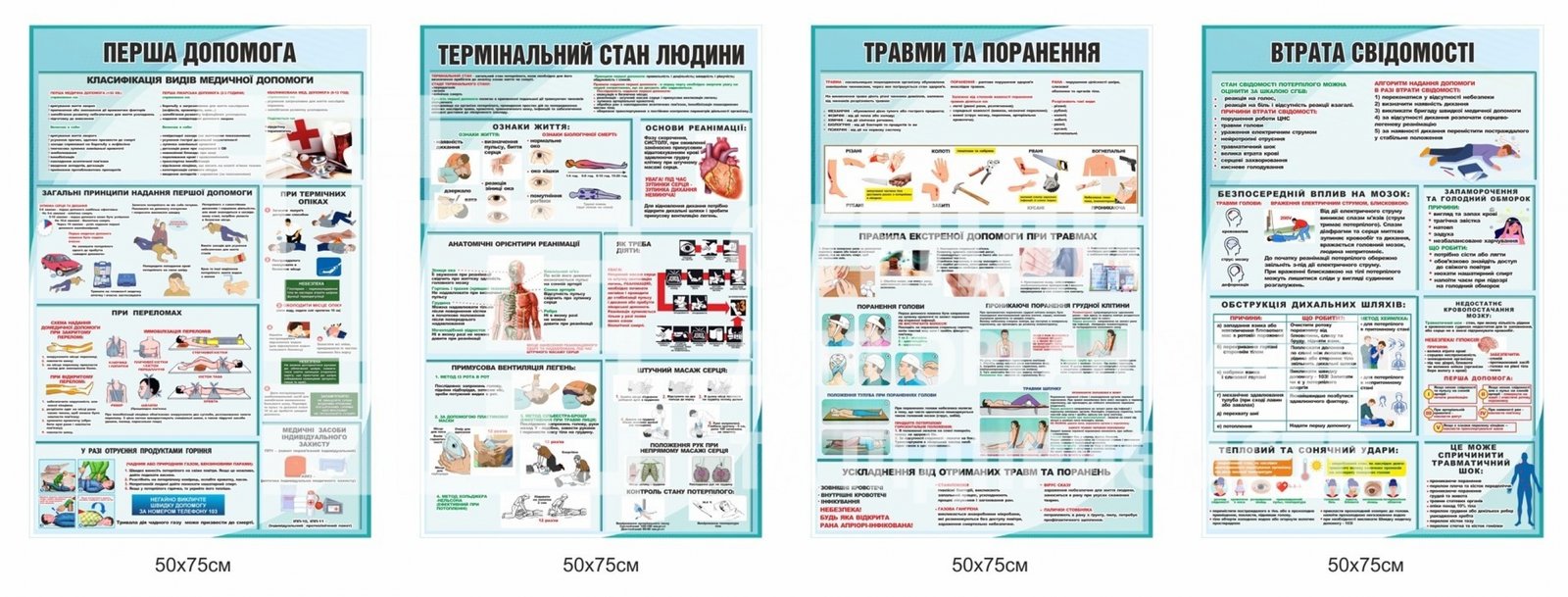 Стенди "Перша допомога. Термінальний стан людини. Травми та пораненя. Втрата свідомості"