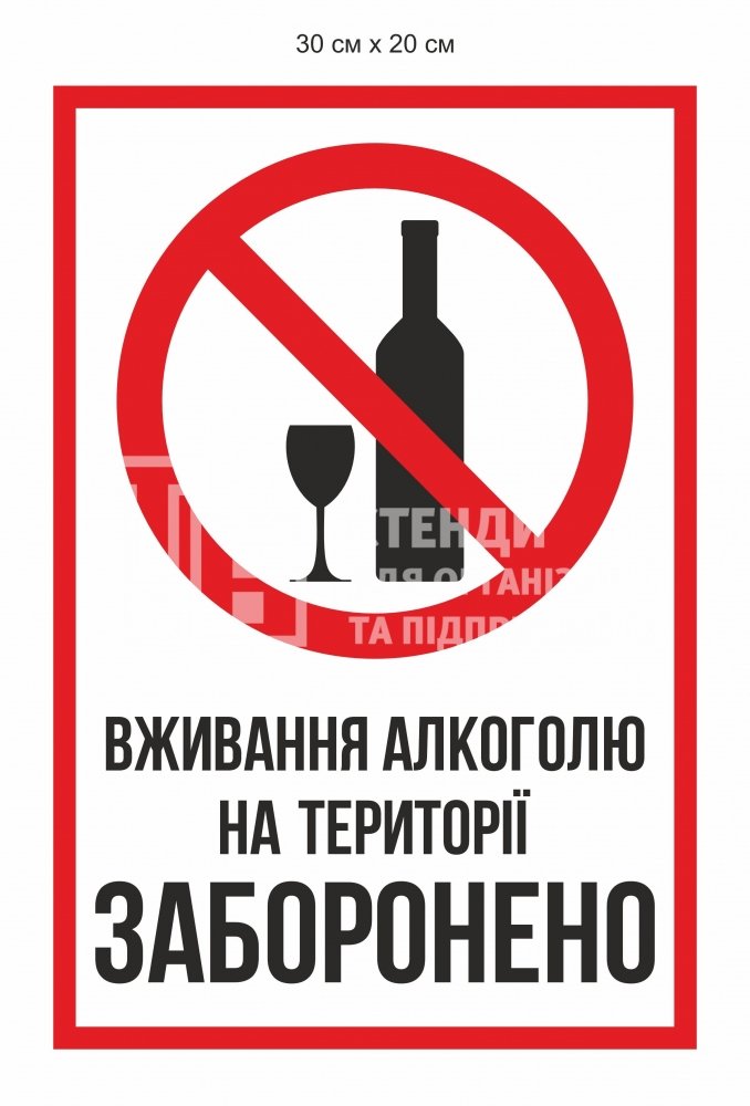 Табличка "Вживання алкоголю на території заборонено" - купити на stend-tb.com.