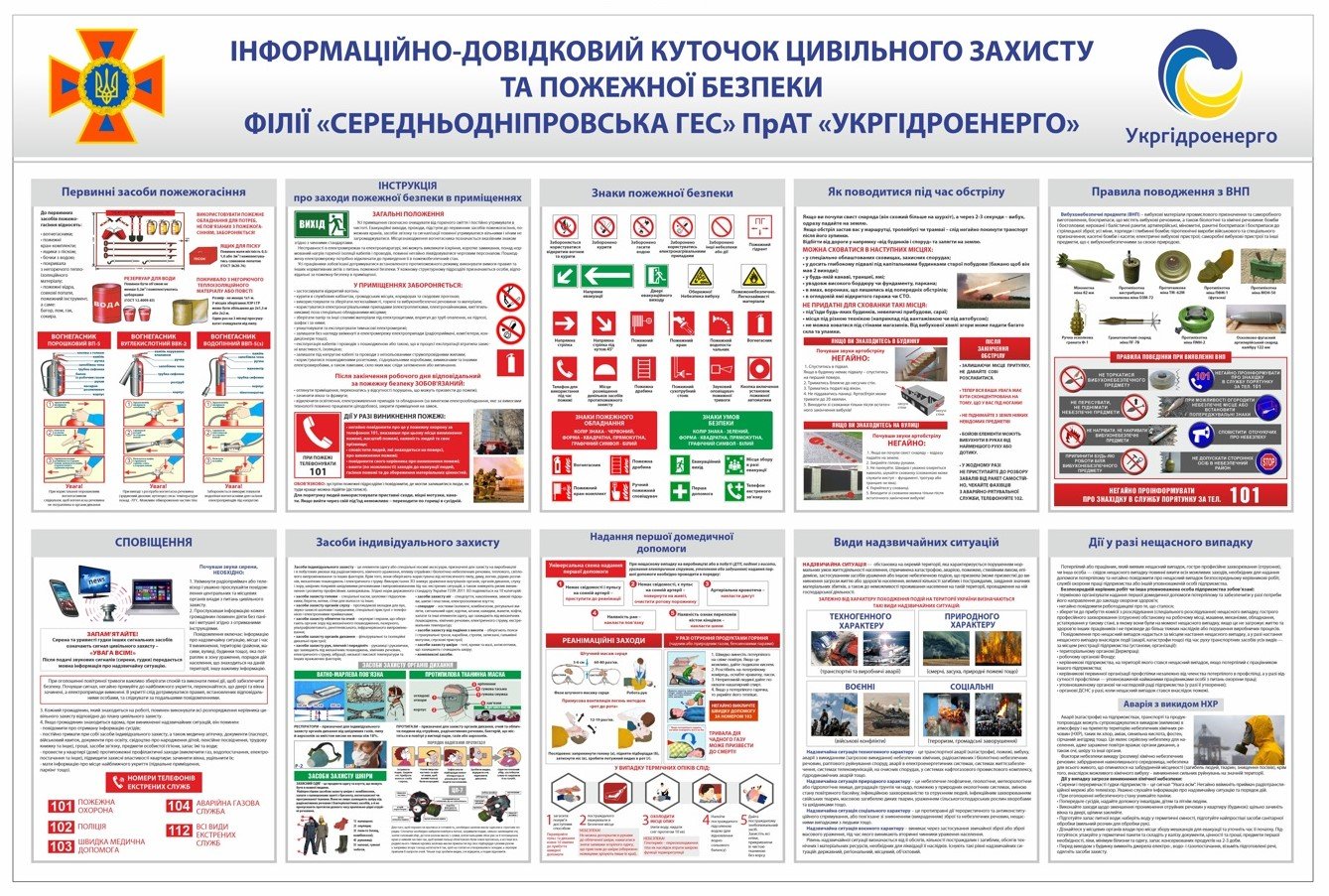 Куточок цивільного захисту — це інформаційний стенд, який містить наочні матеріали та інструкції, що допомагають працівникам швидко зорієнтуватися у разі виникнення надзвичайних ситуацій.