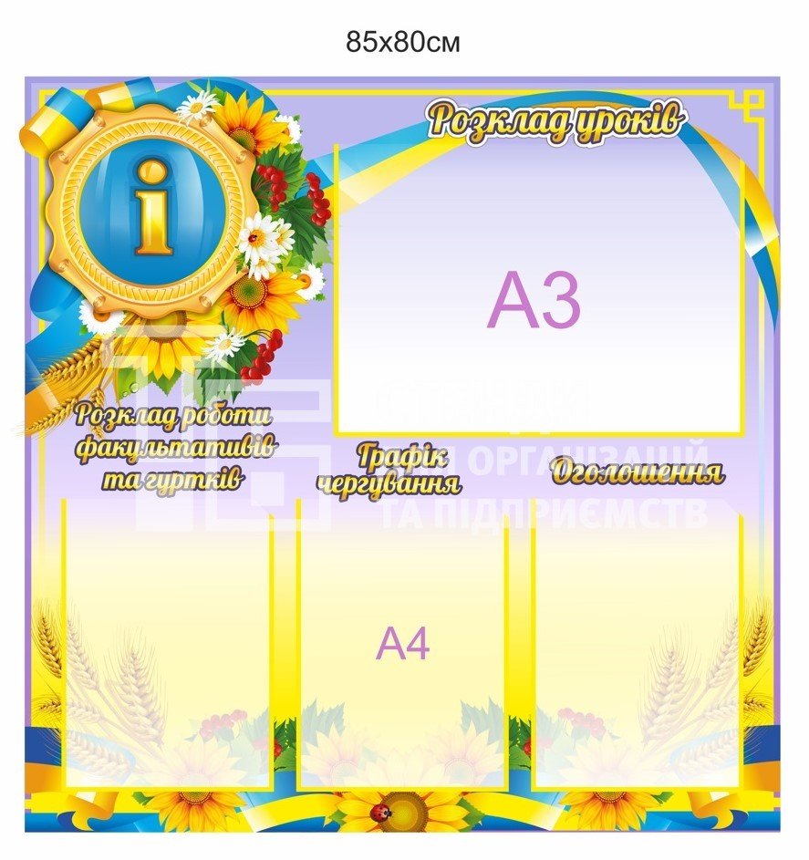Інформаційний стенд з кишенями для розкладів уроків та гуртків - купити на stend-tb.com.