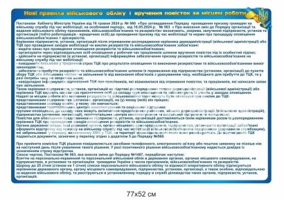"Нові правила військовго обліку і вручення повісток за місцем роботи" стенд - купити на stend-tb.com.