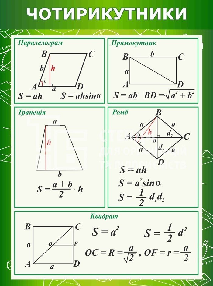 Стенд для класу математики "Чотирикутники" - купити на stend-tb.com.