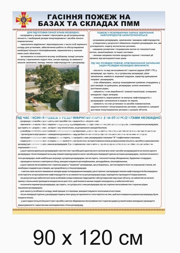 Стенд "Гасіння пожеж на базах та складах ПММ" ДСНС - купити на stend-tb.com.