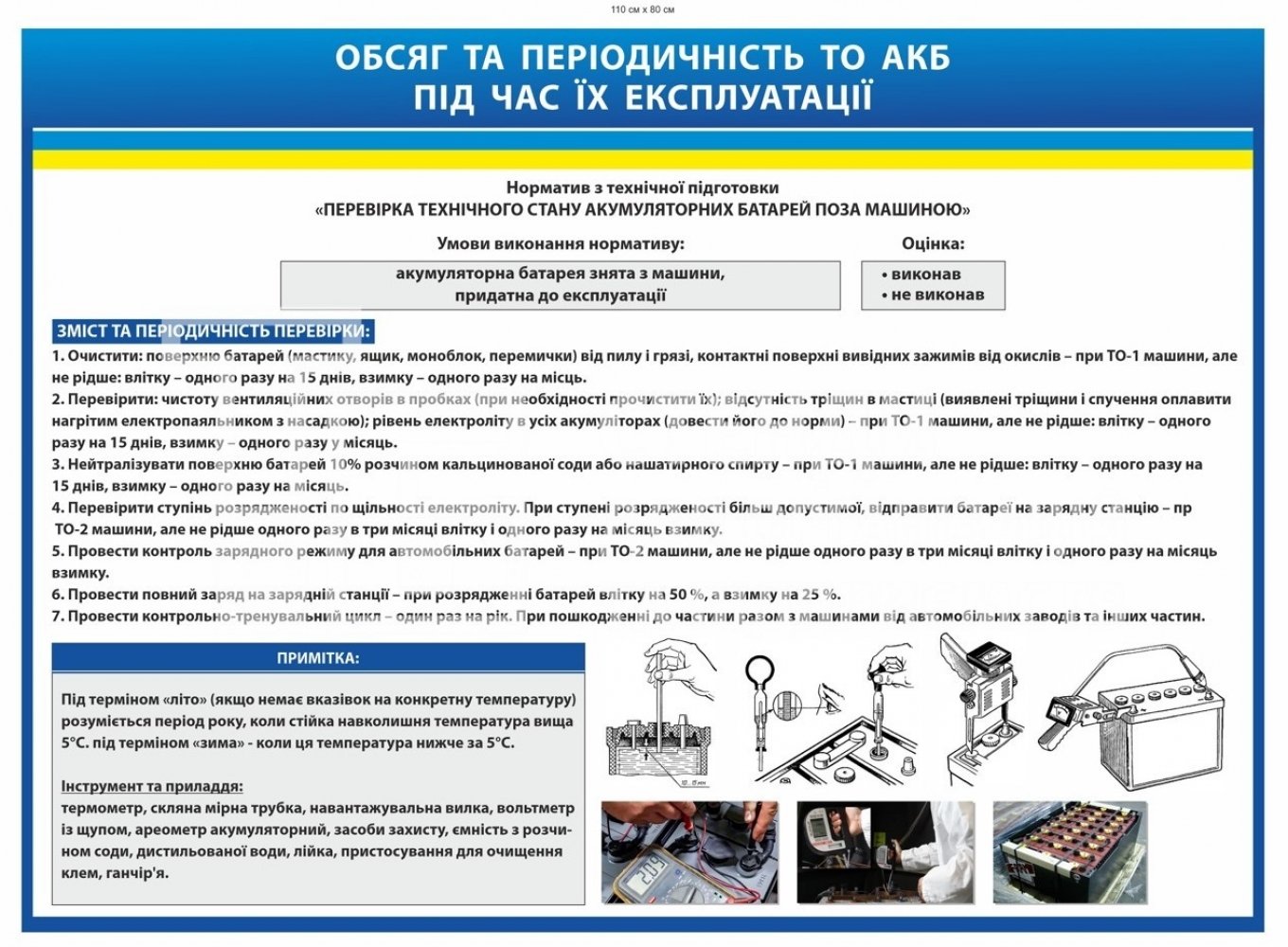 Стенд "Обсяг та періодичність ОТ АКБ під час їх експлуатації" - купити на stend-tb.com
