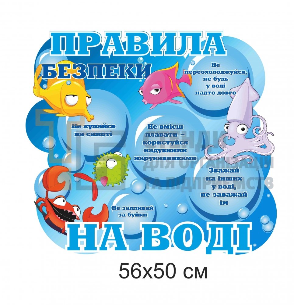 Стенд "Правила безпеки на воді" з рибками - купити на stend-tb.com.