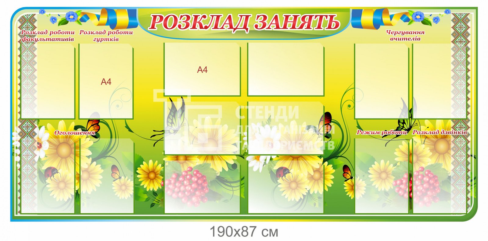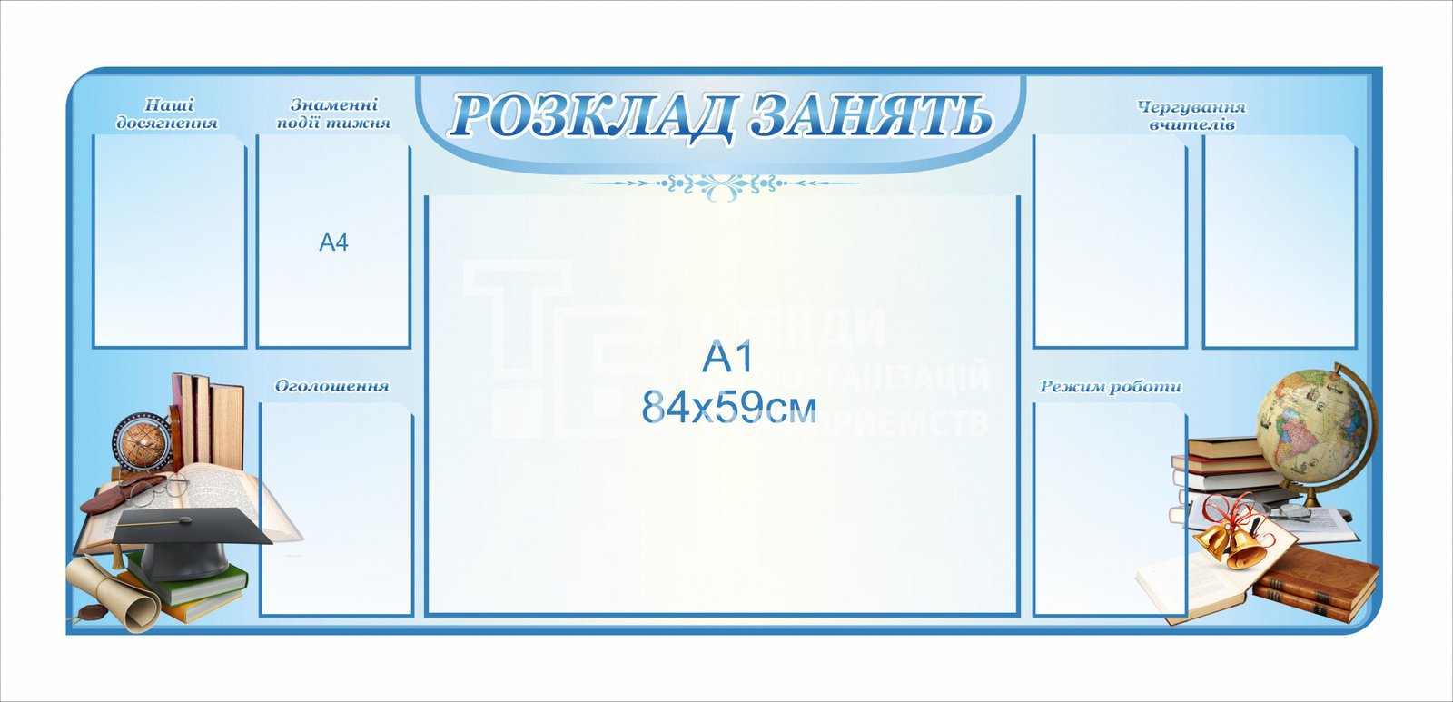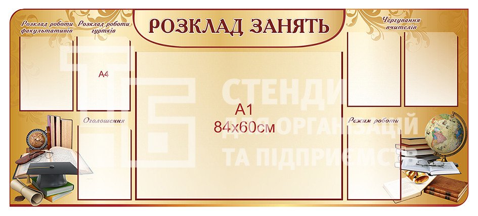 Стенд для розміщення розкладу занять у великому форматі. На стенді кишені для документів.