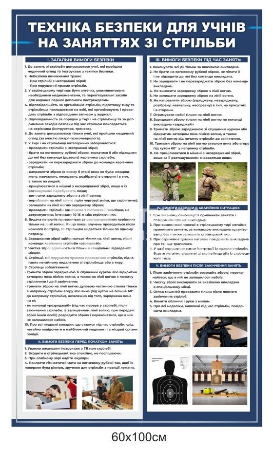 Стенд "Техніка безпеки для учнів на заняттях зі стрільби" - купити на stend-tb.com.