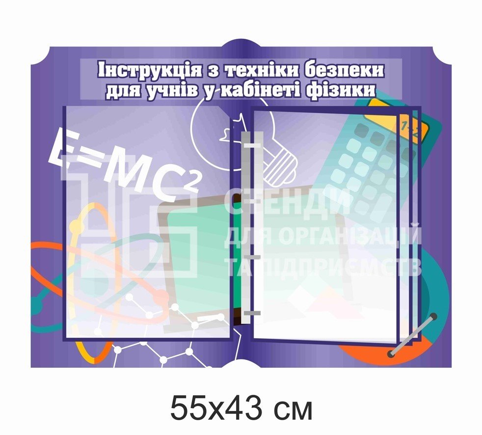 Стенд "Техніка безпеки на уроках фізики" на 5 кишень - купити на stend-tb.com.