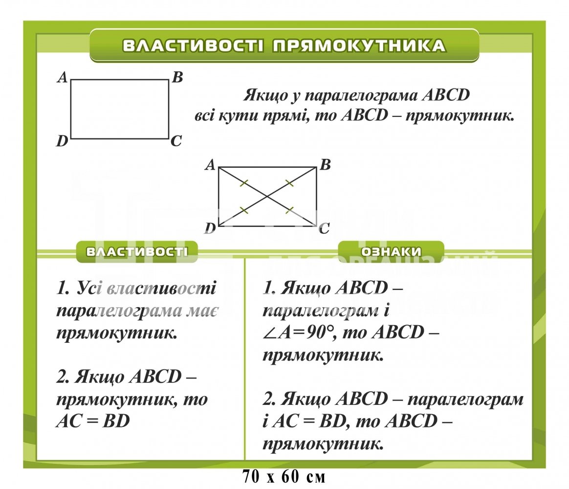 Стенд "Властивості прямокутника" з математики