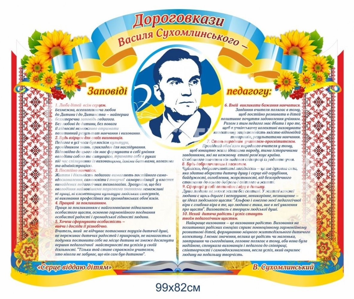 Стенд "Заповіді педагогу Василя Сухомлинського" - купити на stend-tb.com.