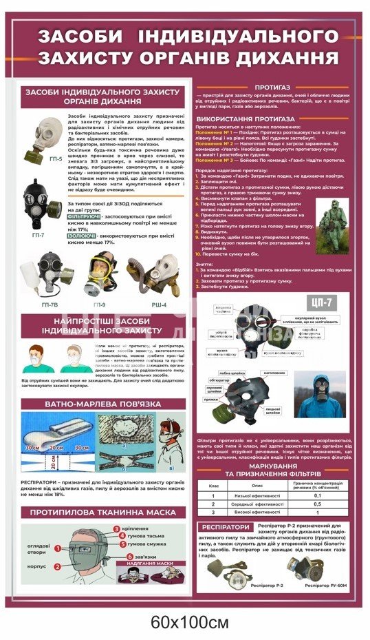 Стенд "Засоби індивідуального захисту органів дихання" - купити на stend-tb.com.