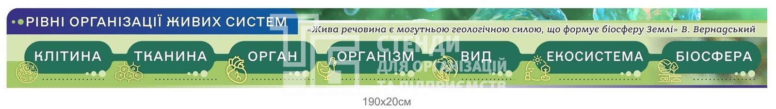 Стенди для школи виготовляються з якісного ПВХ, мають яскравий друк та довговічне покриття, що не вигоряє з часом. Вони ідеально підходять для оформлення кабінетів біології у школах, ліцеях та інших навчальних закладах.