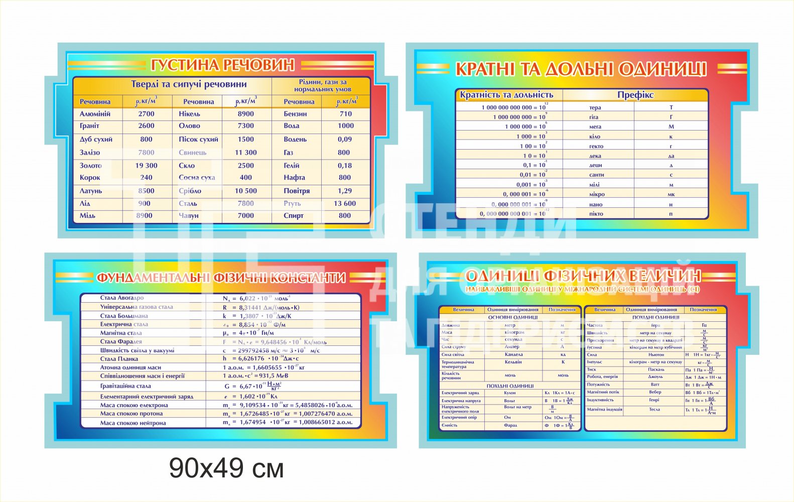Комплект стендів для кабінету фізики. Загальна кількість стендів 4 штуки. Стенди можна замовляти комплектом або окремо.