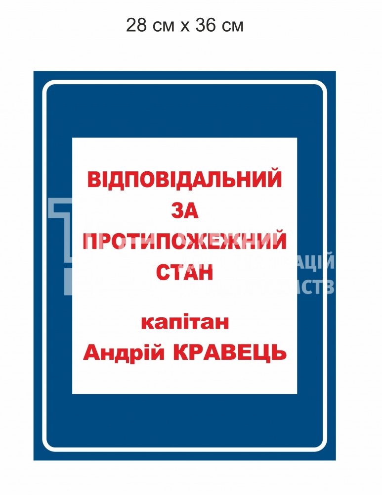 Табличка "Відповідальний за протипожежний стан" - купити на stend-tb.com.
